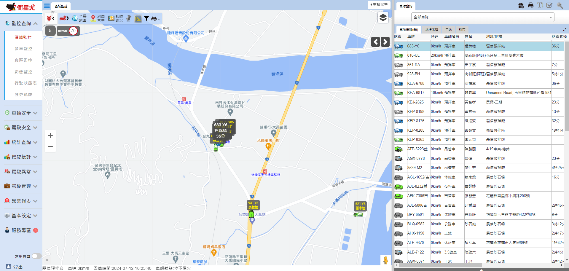 每輛預拌車均具備GPS裝置,隨時掌握車輛狀況
